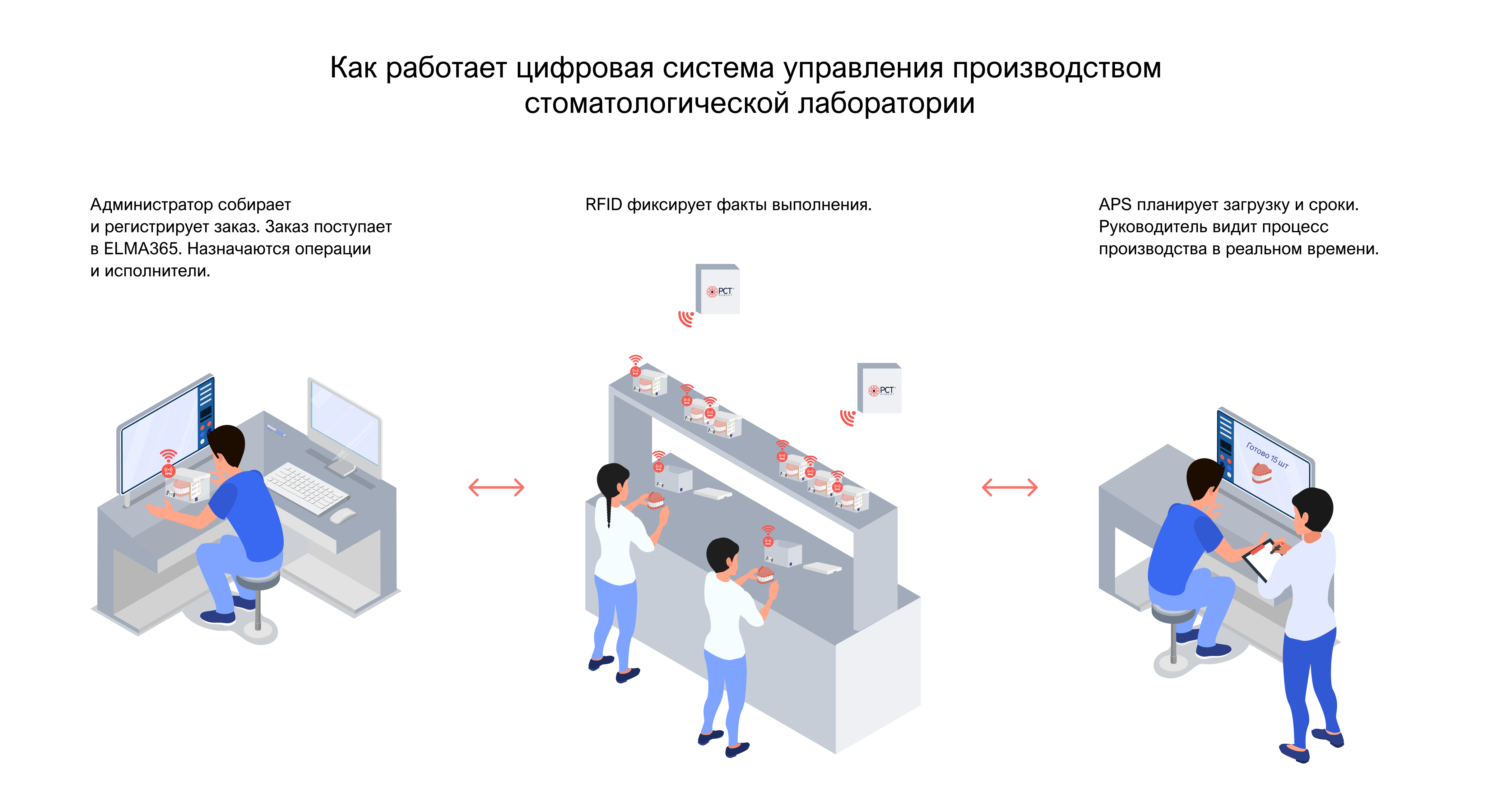 Сегодня, благодаря RFID‑учету от «РСТ-Инвент», платформе ELMA365 и APS‑модулю, мы видим каждый заказ на всех этапах производства, можем оперативно реагировать на отклонения и планировать работу лаборатории и клиник с точностью до минуты. Для бизнеса это означает не только экономию ресурсов, но и устойчивый рост качества обслуживания пациентов и финансовых результатов сети», — подводит итог работы член совета директоров ГК «Дантистофф» Евгений Игошин.