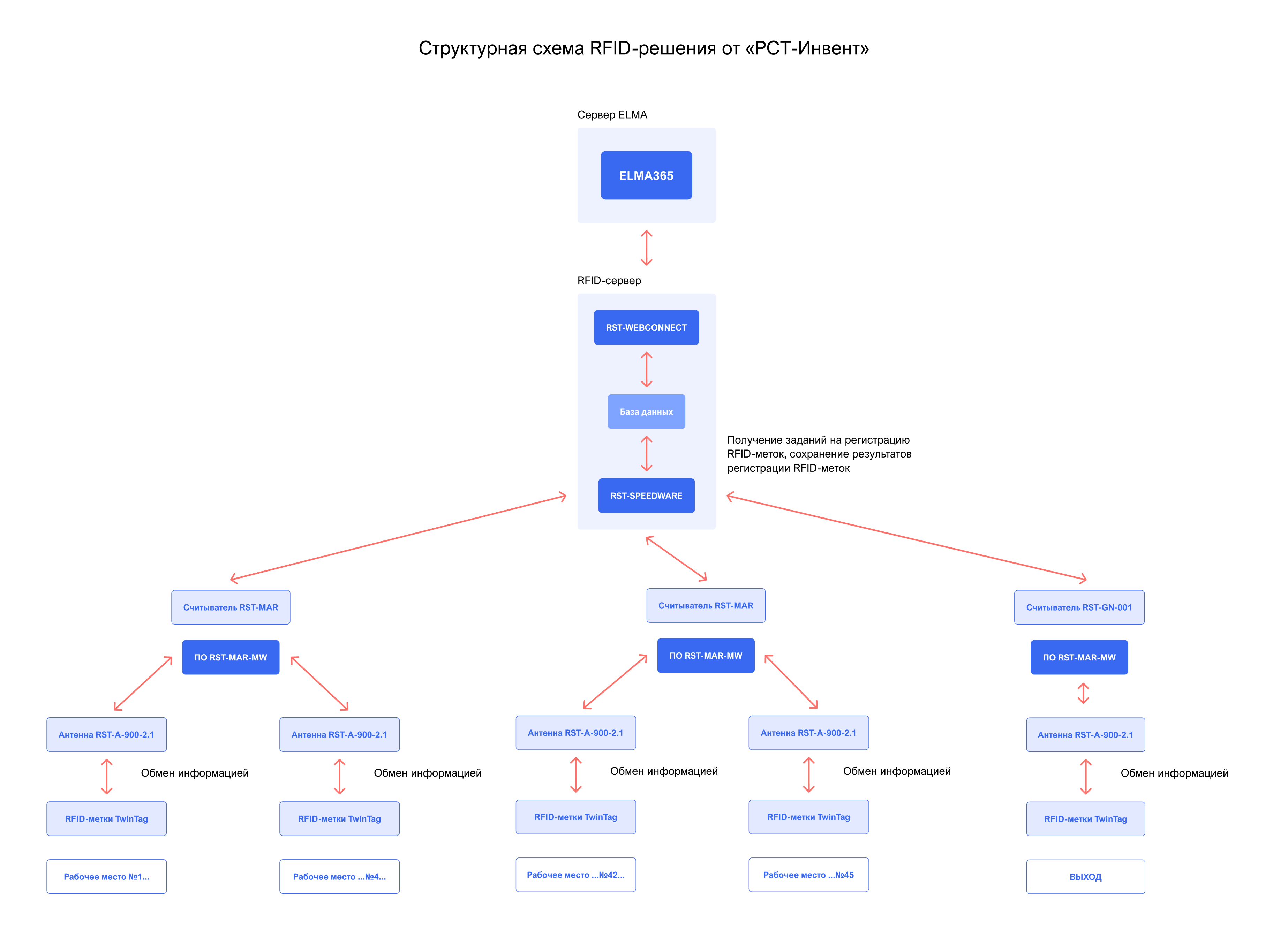 Все RFID‑считыватели RST-MAR подключены к ЛВС предприятия и передают данные на сервер. Благодаря этому оператор или руководитель процесса всегда может точно определить текущее местоположение заказа на производстве.